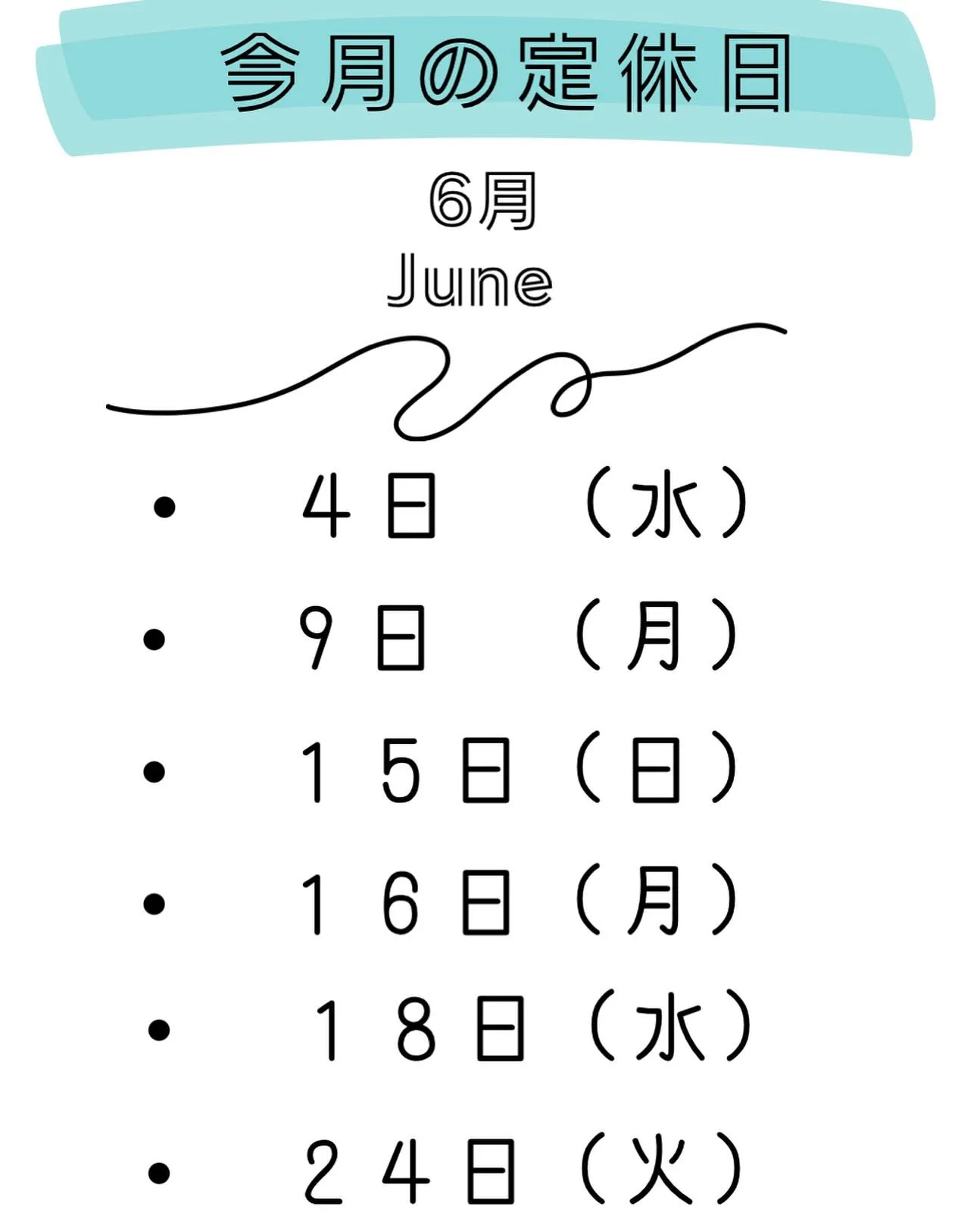 📅 《6月の定休日》