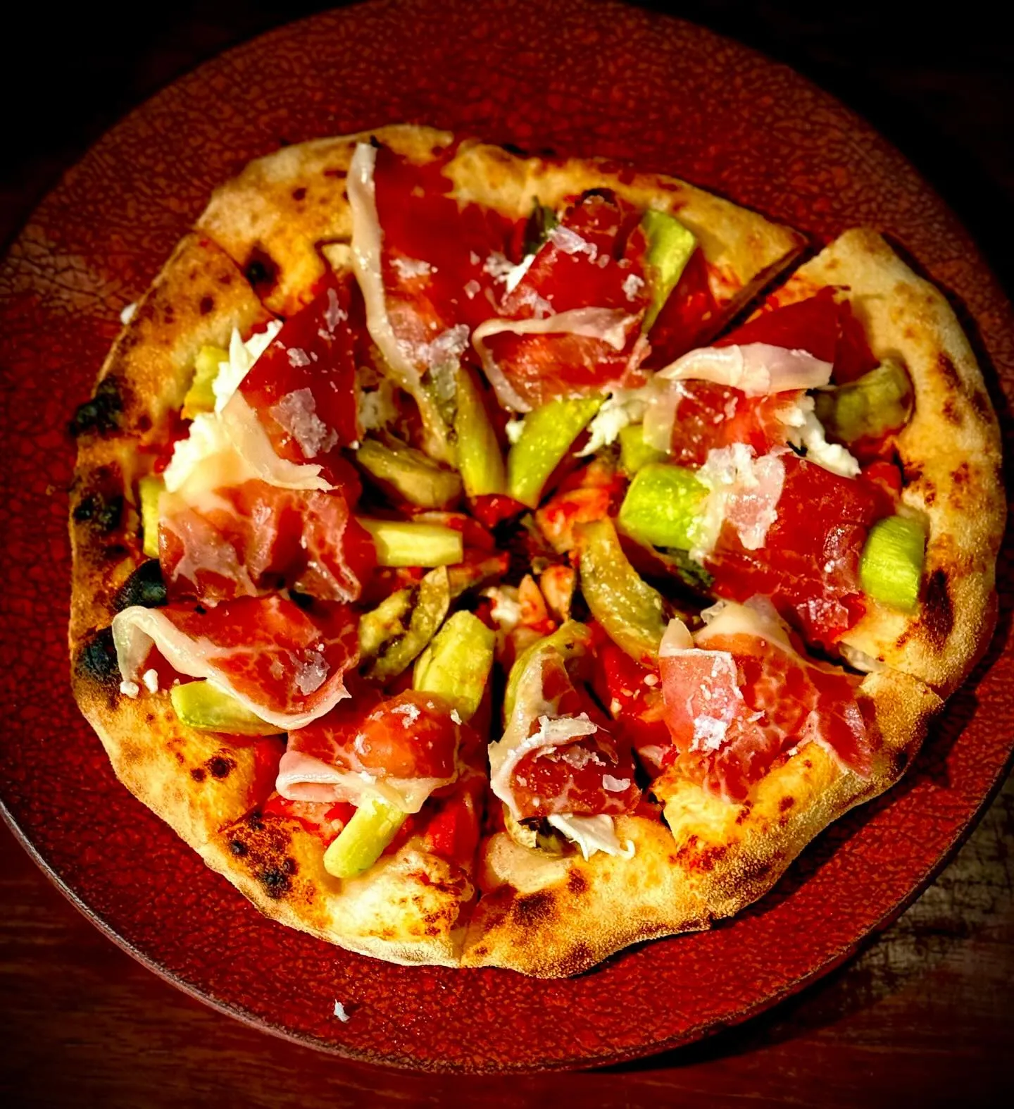 🥓🍕九州の自然の恵みが詰まった逸品「無添加生ハムと0時間モッツァレラのピッツァ」🇯🇵✨。九州産の豚を使用した無添加生ハムは、じっくりと熟成され、その芳醇な風味としっかりとした旨みが特徴です。そして、そのまろやかな生ハムが、焼き立てのピッツァ生地の上でモッツァレラチーズと出会い、贅沢で濃厚な味わいが広がります。