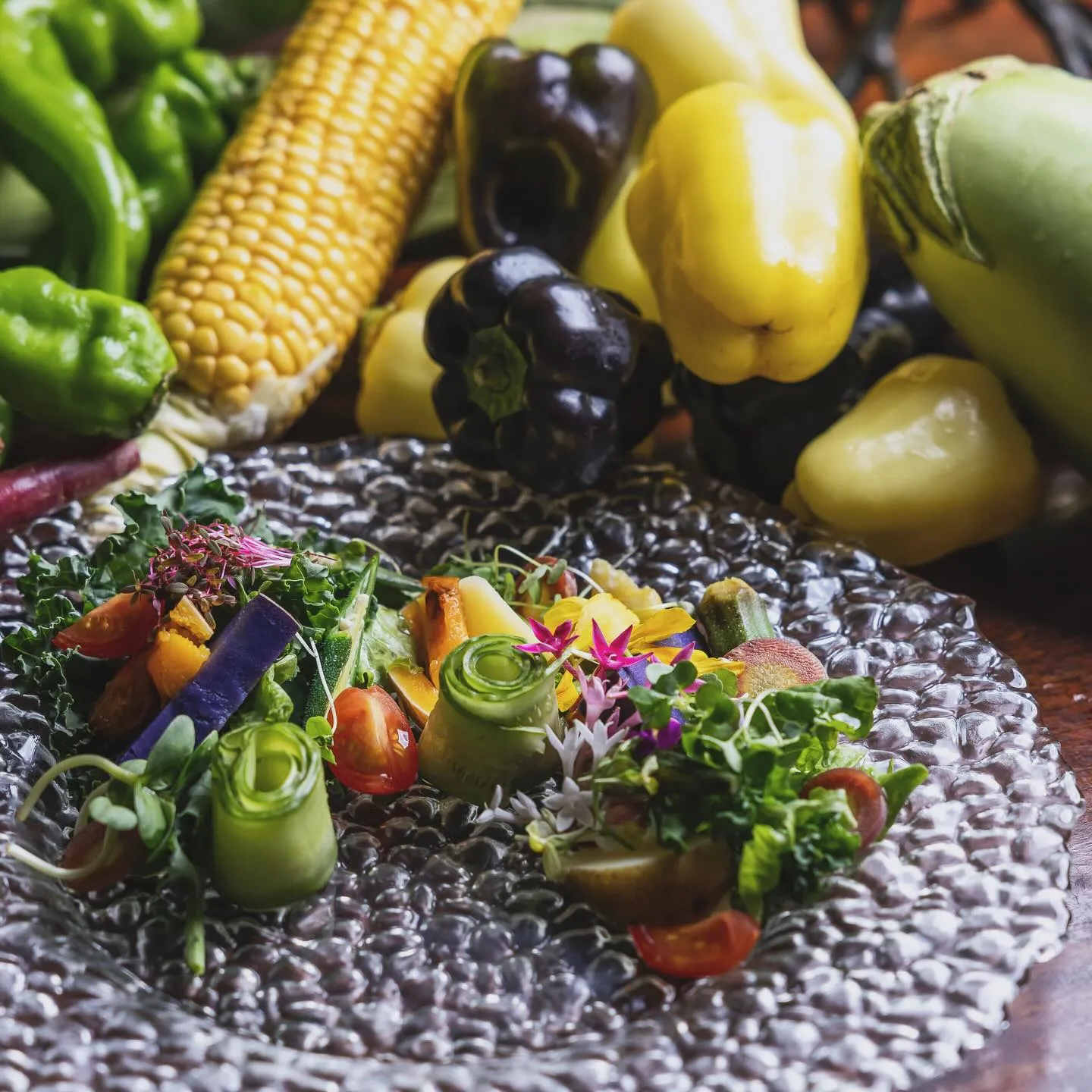 10月の特別コースの1品目は、彩り豊かな旬野菜を使ったバーニ...