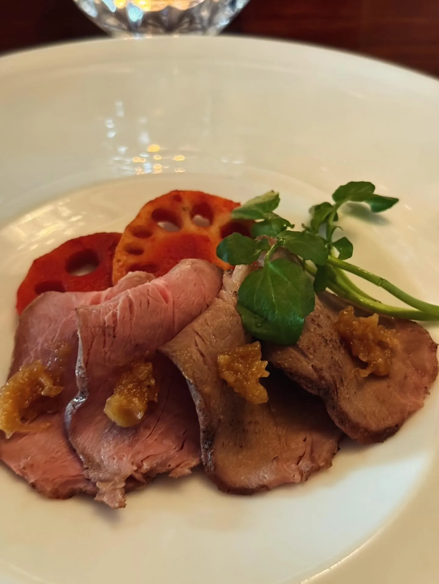 イノシシのローストは、秋の味覚として楽しむことができる独特の一品です。🌿このお料理には、にんにく麹と焦がし玉ねぎのペーストを使用し、香り豊かな体験を提供します。🧄焦げた玉ねぎの甘みと旨味が、イノシシのジューシーな肉に完璧にマッチし、食欲をそそります。