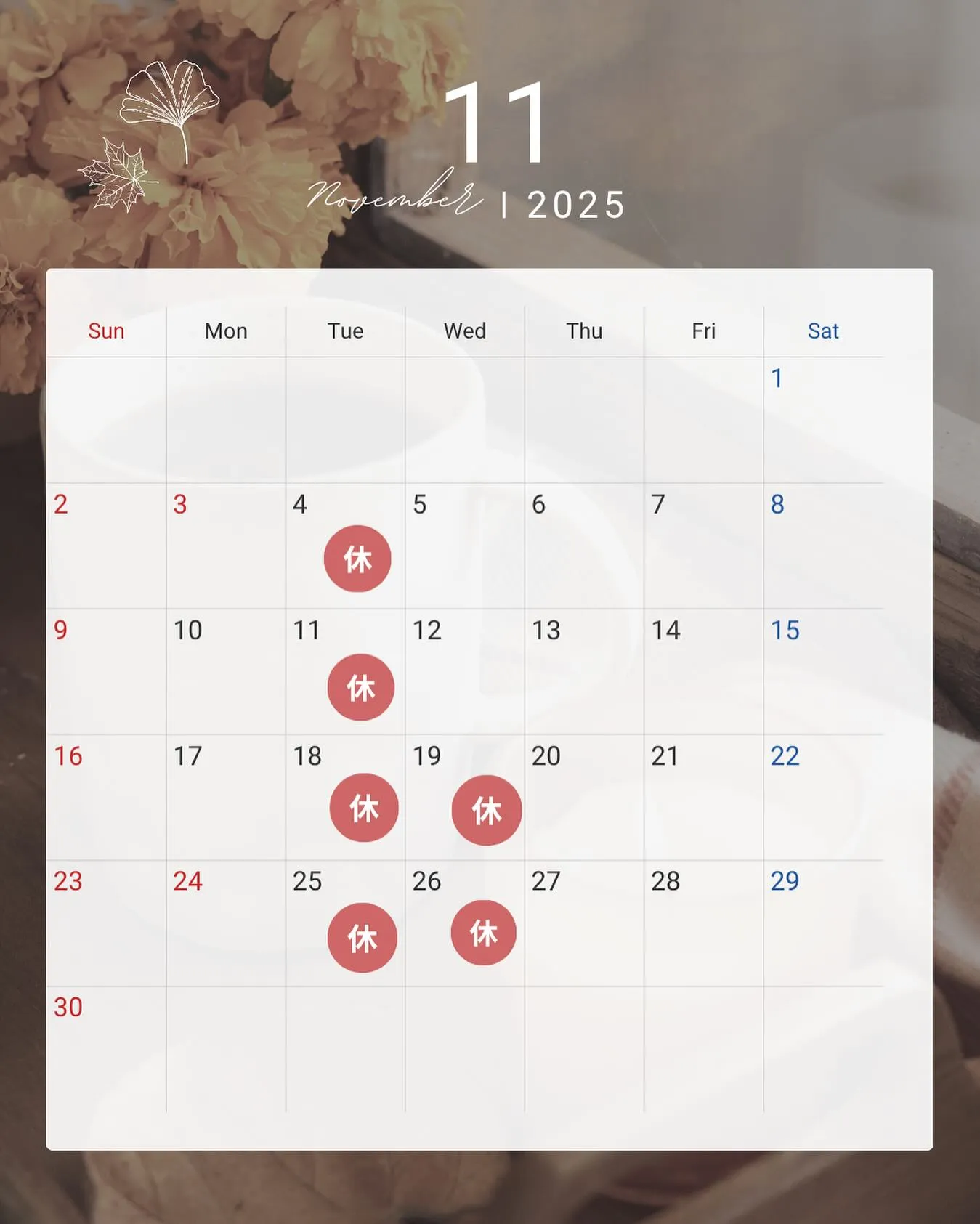 🍁11月定休日のお知らせ🍁