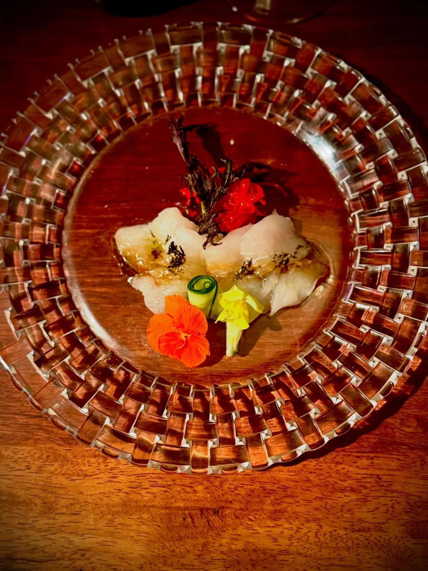 ヒラメの醤油麹マリネのカルパッチョ。