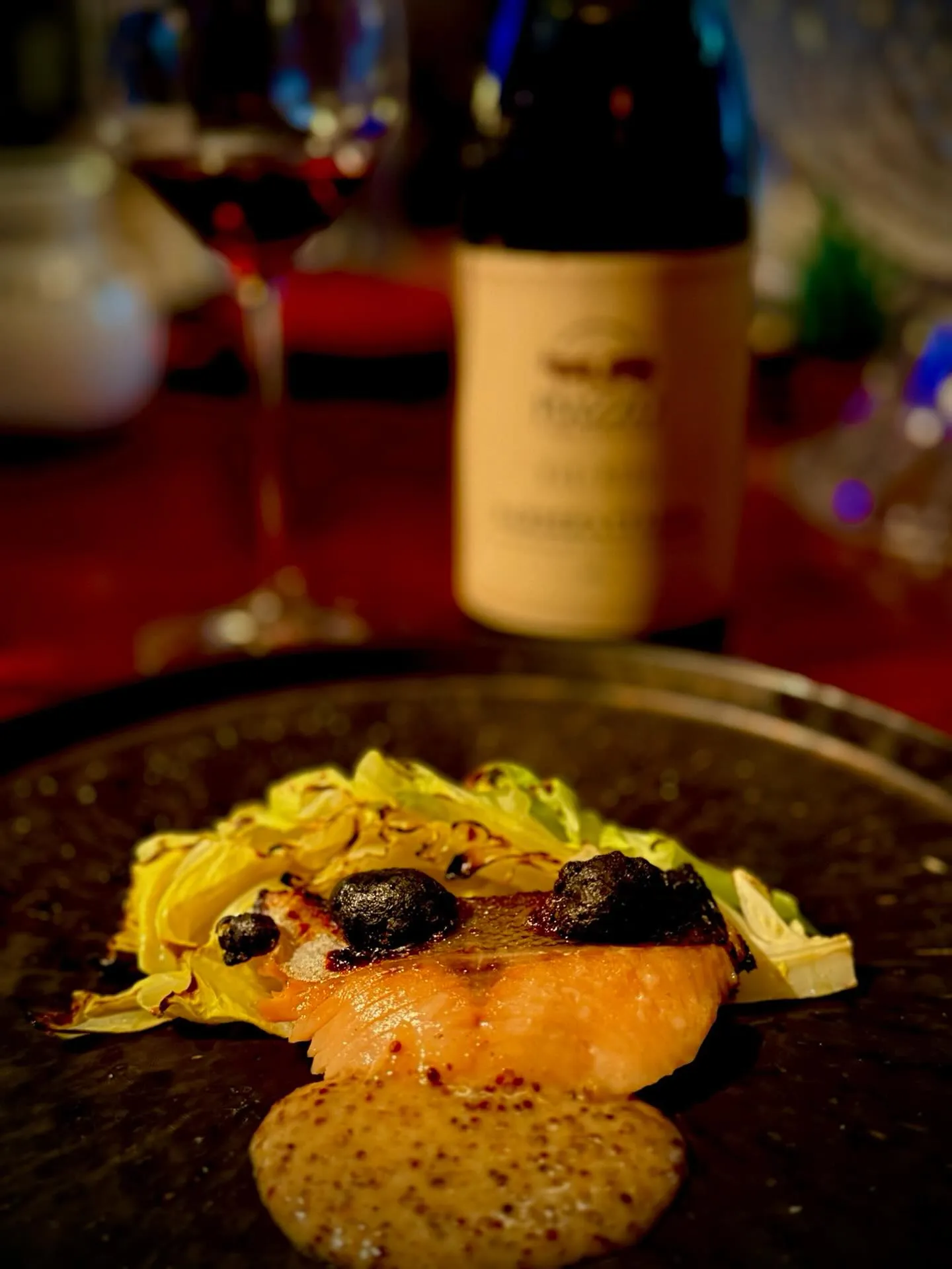 心地よい春の訪れを感じながらいただく一皿をご紹介します。北海道産の鮮やかなサクラマスを使用し、その自然な旨味を最大限に引き立てるために生姜麹に一晩じっくり漬け込みました。こうして仕上がったグリルは、ふっくらとした食感と香ばしさを兼ね備えています。
